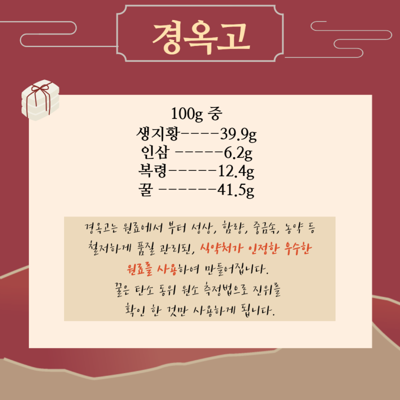 경옥고는 남녀노소 누구나 섭취할 수 있으나, 본인의 질병, 체질, 건강상태에 따라 전문의의 상담과 지도를 받은 후 섭취하는 것이 가장 좋습니다. 또한, 경옥고 섭취 방법을 안내할 때에는 식후 복용을 권장합니다. 소화 기능이 약한 사람은 식전에 복용하면 불편함을 느낄 수 있으므로 가능하면 식후에 복용하는 것이 가장 좋습니다. 예전에는 항아리에 담아서 떠서 먹는 경옥고가 많았으나, 최근에는 짜서 먹기 편한 스틱형 경옥고도 생산되고 있다. 찬물은 증발 기능이 약해 약효 성분의 흡수를 방해할 수 있습니다. 미지근한 물이나 미지근한 물과 함께 알약과 스틱 형태를 함께 복용하는 것이 가장 좋습니다. 경옥고의 효과를 극대화하기 위해서는 올바른 복용량 방법을 따르는 것이 가장 좋습니다.