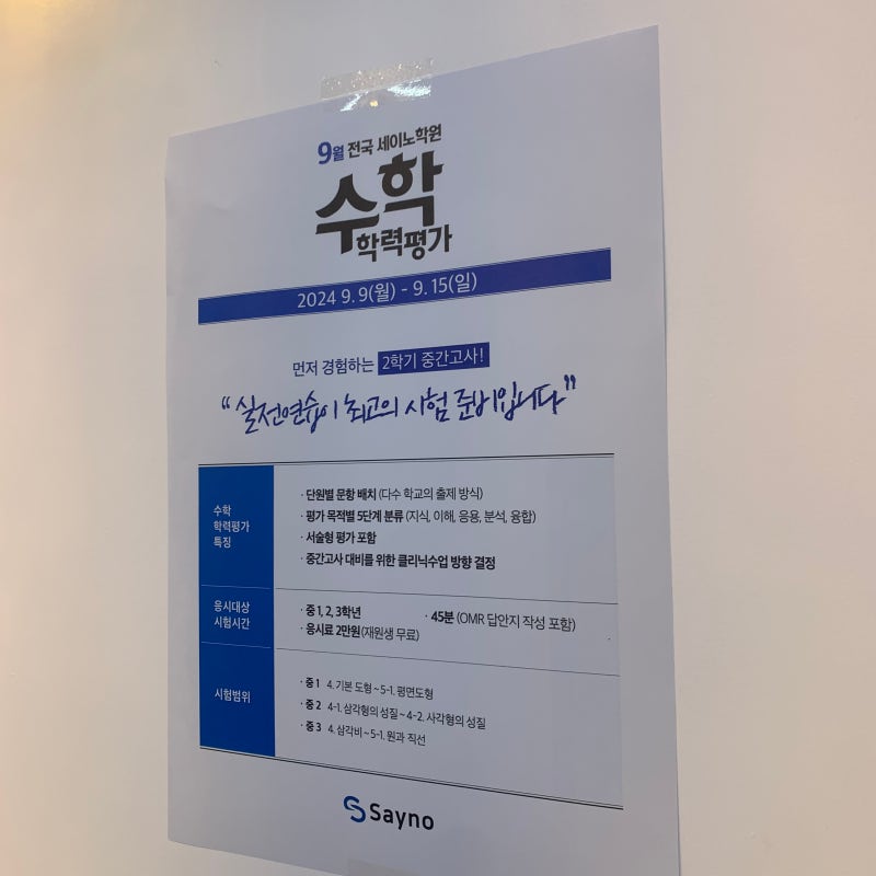 대치동중학교 수학학원을 다니기 시작하면서 중학교 수학의 기본 개념은 물론, 곧 입학하게 될 고등학교 수학의 기본 개념도 정리하고 있습니다. 고등학교에 입학하면 해야 할 공부량이 늘어나기 때문에 미리 어느 정도 연습을 하지 않으면 결국 잡으려고 노력하기 때문에 다른 과목을 제대로 공부하지 못하게 된다고 합니다. 위로. 이런 문제를 사전에 예방할 수 있도록 하나하나 세심하게 챙겨주는 곳이라 더욱 고민이 되는 곳이에요. 이제 나는 명확한 공부 방법을 알게 되었고, 어려운 문제나 이해하지 못하는 개념에 직면했을 때 어떻게 해야 하는지 알게 되었습니다. 이런 부분은 누가 가르쳐주기보다는 직접 배워보는 것이 좋은데, 여기는 그런 부분까지 세세하게 가르쳐주기 때문에 우리 아이의 미래가 더욱 기대가 됩니다.