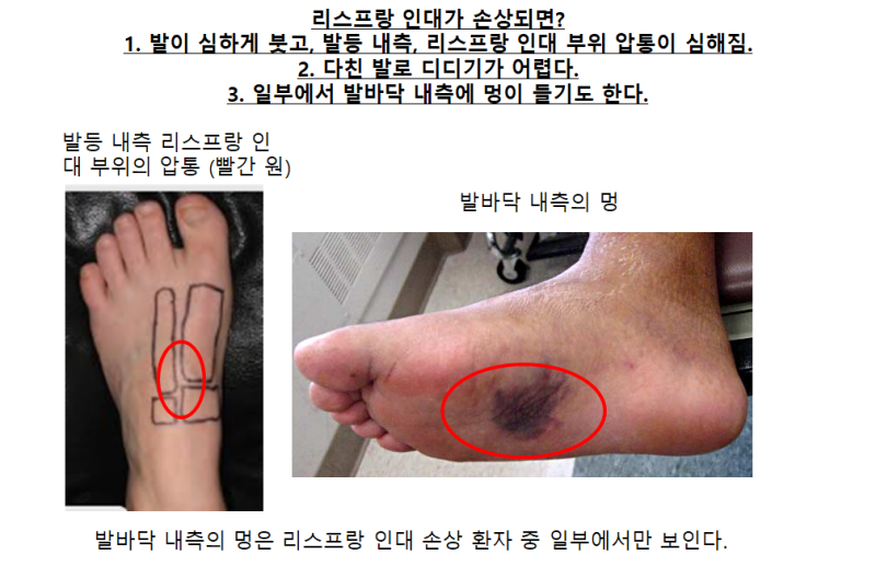 그렇기 때문에 등쪽 인대가 파열되어 관절이 안정적으로 지지되지 못하면 발 전체의 균형이 무너져 관절이 불안정해지게 됩니다. 부상의 초기 단계에서 적절한 코팅을 받는 것은 이점이 있습니다. 그렇지 않으면 인대가 약간 느슨한 위치에서 치유될 수 있으며, 시간이 지남에 따라 반복적으로 손상되면 관절의 연골도 손상될 수 있습니다. 중증도에 따라 캐스트 또는 수술이 필요할 수 있습니다. 일반적으로 초기에는 약물치료, 주사요법, 수기운동 등의 보존적 치료를 통해 증상을 호전시킬 수 있습니다. 반면 손상이 심한 경우에는 보존적 치료가 제한되기 때문에 증상 호전을 위해 수술이 필요할 수 있습니다.
