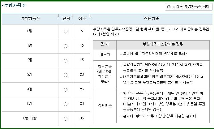 아파트 신청 시 부양가족 수를 정확하게 계산하시기 바랍니다.